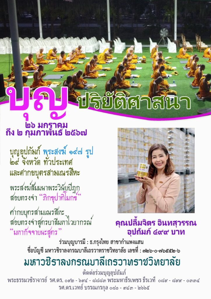 ติดต่อร่วมบุญอุปถัมภ์ พระธรรมวชิราจารย์ รศ.ดร. ๐๙๒ – ๖๙๔ – ๘๘๘๓ พระมหาธีรเพชร ธีรเวที ๐๘๙ – ๘๙๙ – ๐๓๓๔ รศ.ดร.เวทย์ บรรณกรกุล ๐๘๑ – ๙๔๓ – ๒๖๖๕