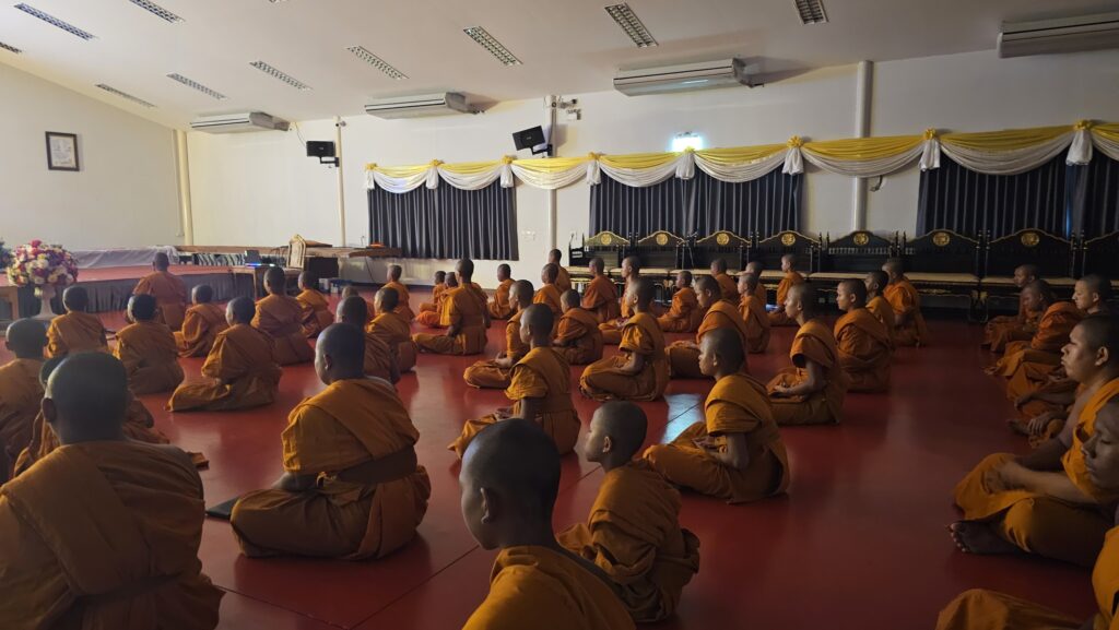 พระธรรมวชิราจารย์ มอบหมายให้พระพี่เลี้ยง อาจารย์ และคณะศากยบุตรสามเณรสีหะ มหาวชิราลงกรณบาลีเถรวาทราชวิทยาลัย สวดสาธยายมหากัจจายนสูตร ทำวัตรสวดมนต์ สวดสาธยายบทพระกัมมัฏฐาน ธรรมนาวา “วัง” ณ อุปัฏฐานศาลา พระราชวชิรเวที (บรรจบ ขนฺติโก) อุทยานลานธรรมพระกัมมัฏฐาน