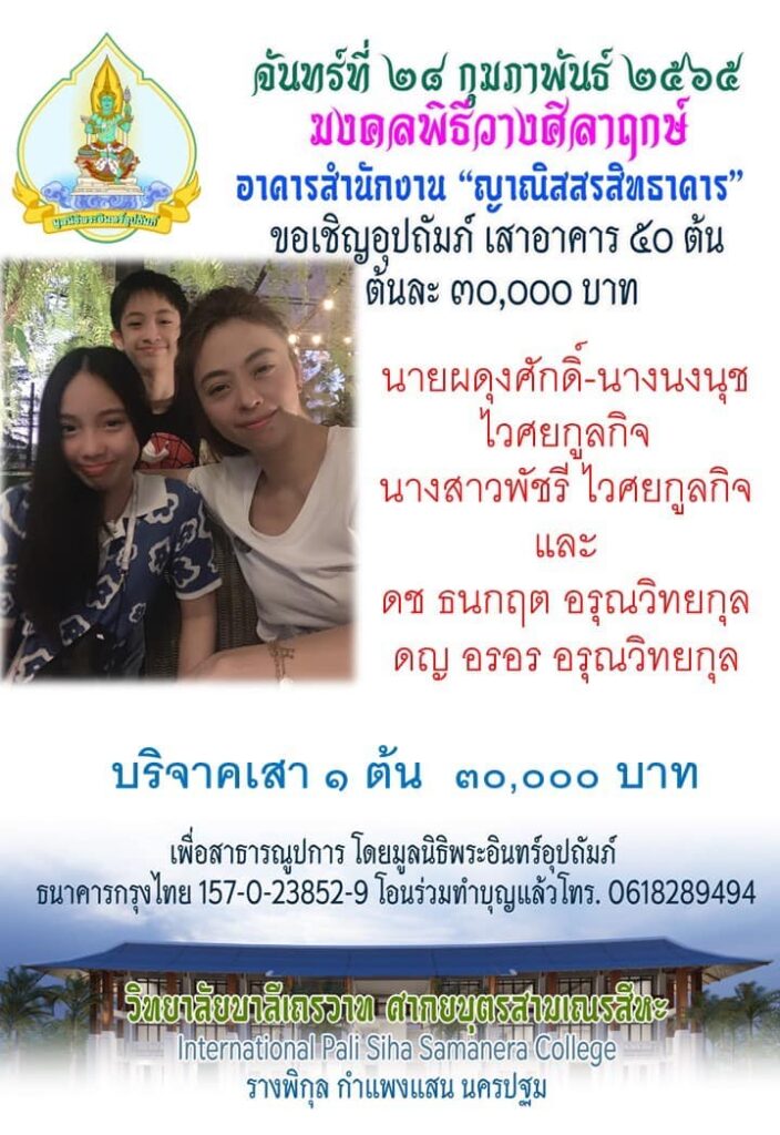 กำหนดพิธีวางศิลาฤกษ์ และยกเสาอาคารชั้นที่ ๑ จำนวน ๕๐ ต้น ๆ ละ ๓๐,๐๐๐ บาท ในวันที่ ๒๘ กุมภาพันธ์ ๒๕๖๕