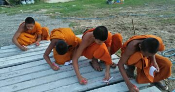 วันนี้ ก่อนเสาเข็มจะตอกลงหลุม ศากยบุตรสามเณรสีหะ ดีใจกันยกใหญ่ รีบวิ่งไปเขียนรายชื่อ โยมพ่อ แม่ ปู่ ย่า ตา ยาย