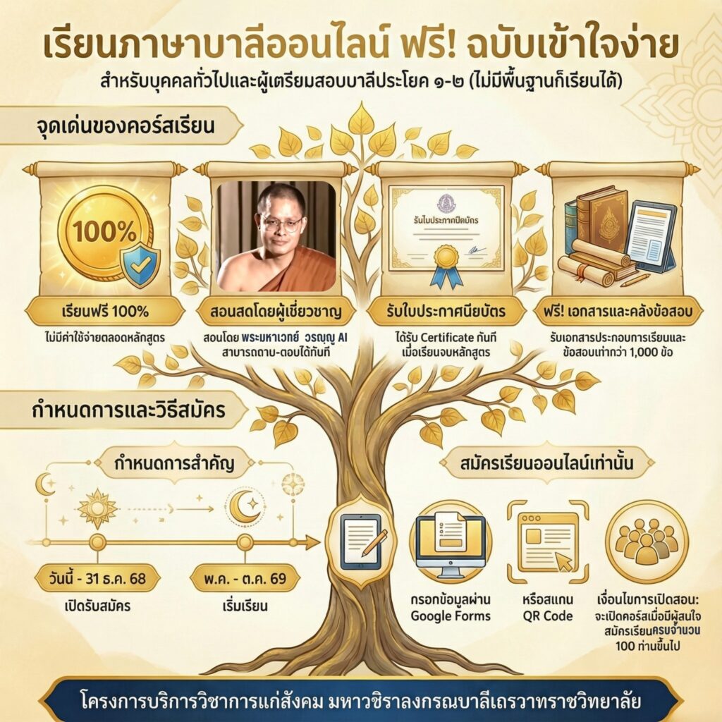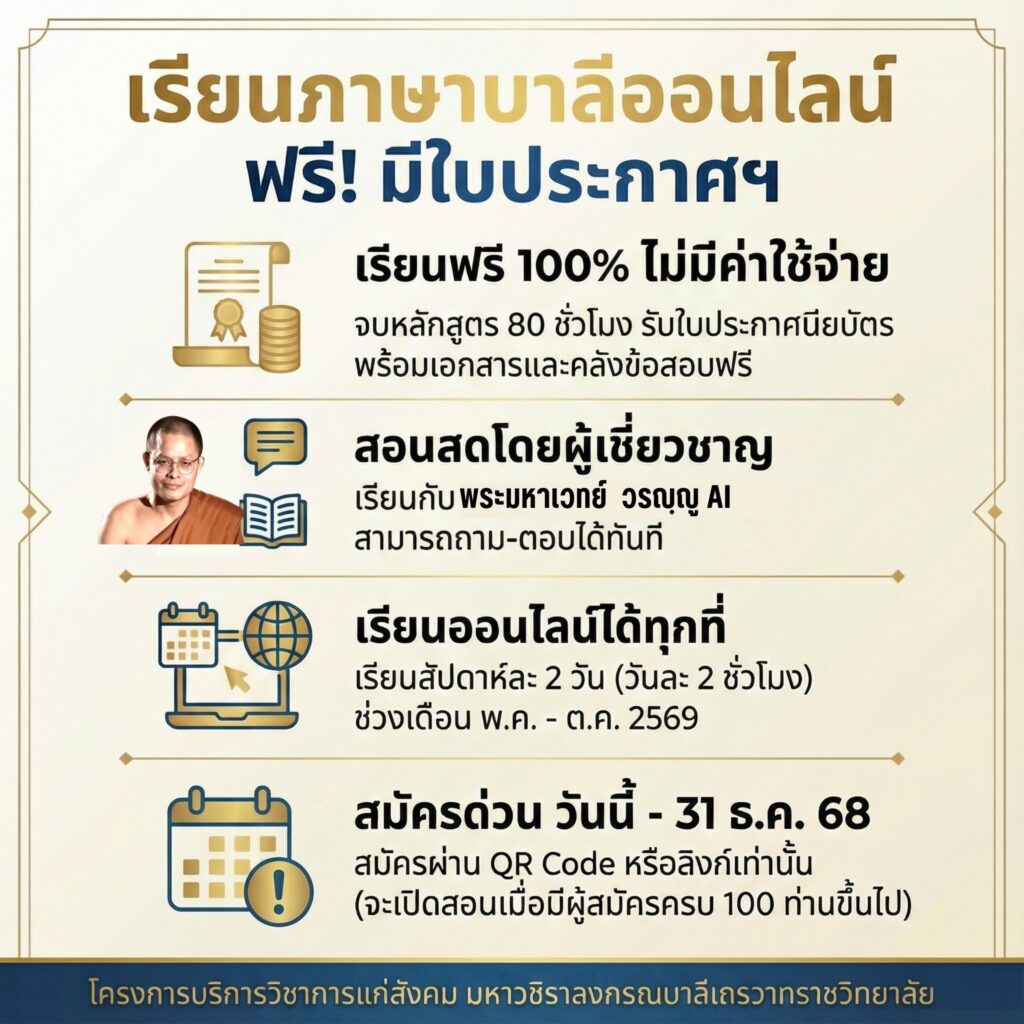 เปิดคลาส “ภาษาบาลีออนไลน์” ฉบับเข้าใจง่าย สอนสดโดยผู้เชี่ยวชาญ!