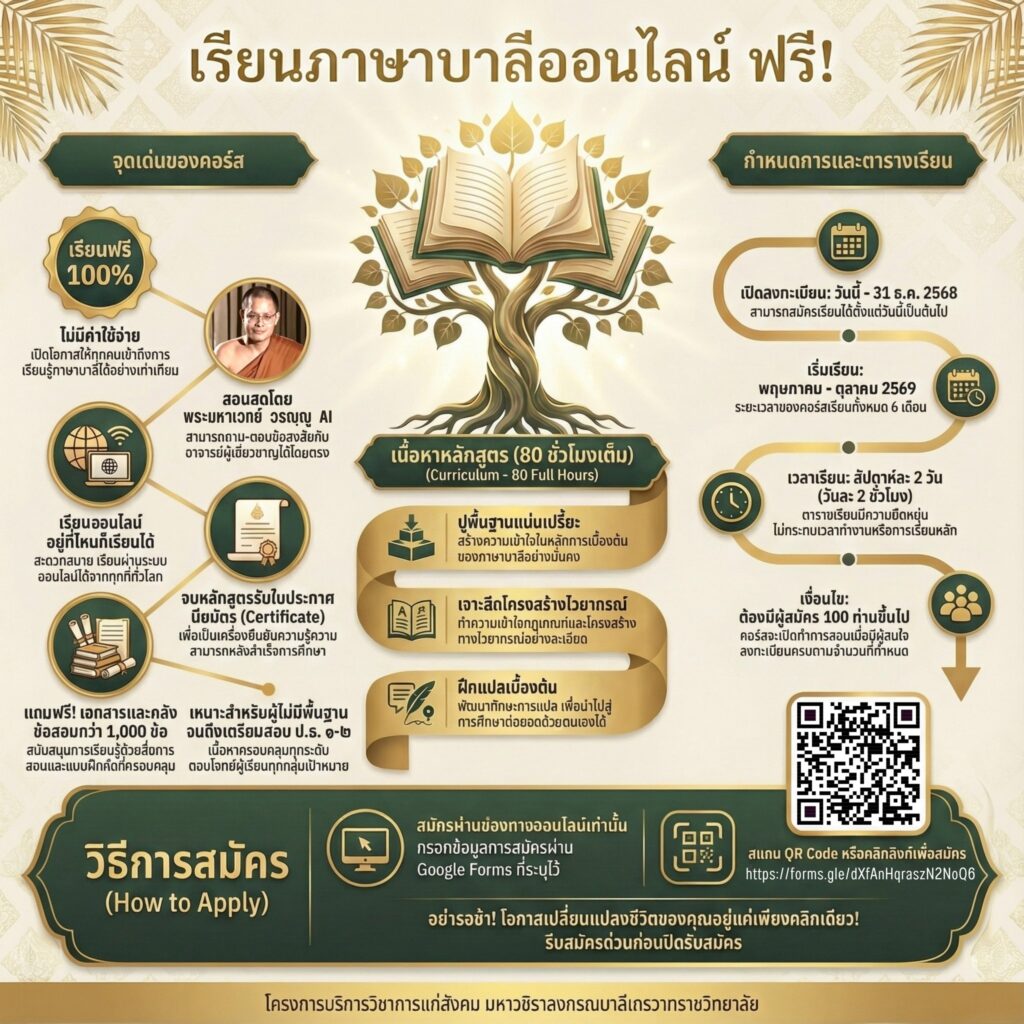 เปิดโอกาสทองสำหรับผู้สนใจภาษาบาลี