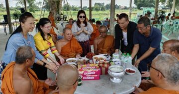 คุณจิตติมา บุญปักษ์ และ พ.ต.อ.อนันต์ไพศาล แดงดอนไพร ผู้กำกับการ สภ. สำรอง กาญจนบุรี เจ้าภาพอาหารสเลิศ ไก่ KFC พร้อมขนม โดนัท ถวายเป็นภัตตาหารเพล