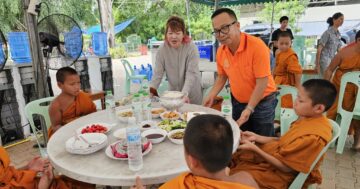 ดร.ภาณุวัฒน์ สะสมทรัพย์ สมาชิกสภาผู้แทนราษฎร จังหวัดนครปฐม และสะใภ้ใจบุญ ดร.ชุตินันท์ สะสมทรัพย์ เดินทางมาถวายเครื่องกรองน้ำสำหรับบริโภค