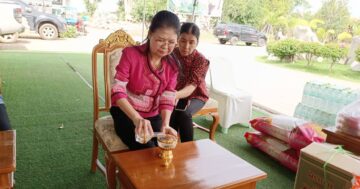 นำเครื่องอุปโภค บริโภค ข้าวสาร อาหารแห้ง น้ำดื่ม และรองเท้า ๑๐๐ คู่ ถวายพระสงฆ์และศากยบุตรสามเณรสีหะ ๘๑ รูป