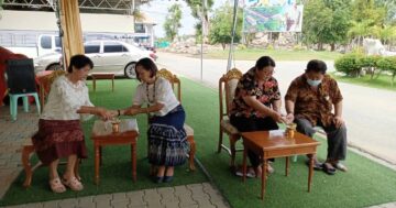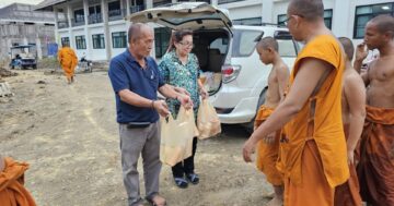 ๒ อุบาสิกาชาวกำแพงแสน ลูกศิษย์ท่านอาจารย์พระมหาธีรเพชร ธีรเวที ป.ธ. ๙ นำภัตตาหารข้าวมันไก่ ขนมเค้ก