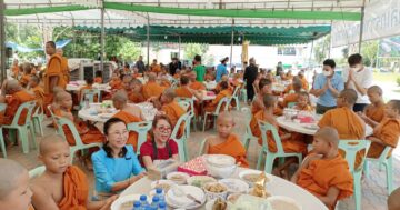บริจาคกังหันตีน้ำพลังงานแสงอาทิตย์ ๒ เครื่อง น้ำดื่ม และร่วมบุญถวายภัตตาหารเพลพระสงฆ์สามเณร ๘๑ รูป ณ โครงการสร้าง มหาวชิราลงกรณบาลีเถรวาทราชวิทยาลัย