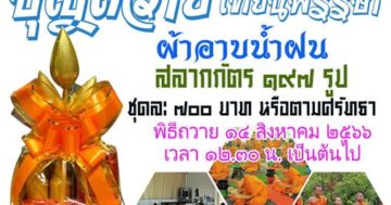 ถวายในวันที่ ๑๔ สิงหาคม ๒๕๖๖ เริ่มบุญพิธีตั้งแต่เวลา ๑๒.๓๐ น. เป็นต้นไป ร่วมบุญบารมี : ธ.กรุงไทย สาขาศาลายา มูลนิธิสถาบันบาฬีศึกษาพุทธโฆส