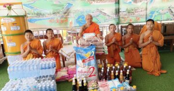 ถวายข้าวสารอาหารแห้ง ปัจจัยอีก ๑,๐๐๐ บาท อุปถัมภ์นำเข้าโรงครัวเพื่อศากยบุตรสามเณรสีหะ