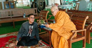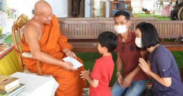 พระเดชพระคุณ เจ้าคณะจังหวัด ได้ฟังลูกหลานศากยบุตรสามเณรสีหะ ให้ศีล ให้พร อนุโมทนา ๓ ภาษา Pali Thai English จบแล้ว ปีติอิ่มใจ มอบปัจจัยเป็นทุนการศึกษาทุกรูป