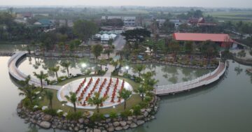 นางกรองแก้ว แก้วธนาวิทย์ ผู้อุปถัมภ์สร้างเกาะกลางมณฑลนฤพาน อุทยานลานธรรมกัมมัฏฐานทำหน้าที่เป็นประธานเชิญภัตตาหารเพลพระราชทาน