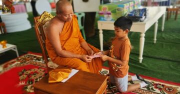 วันนี้ ก่อนเสาเข็มจะตอกลงหลุม ศากยบุตรสามเณรสีหะ ดีใจกันยกใหญ่ รีบวิ่งไปเขียนรายชื่อ โยมพ่อ แม่ ปู่ ย่า ตา ยาย