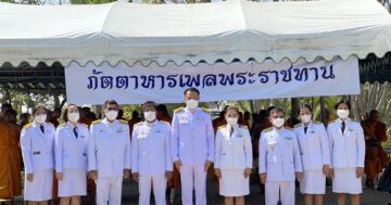 นายสุรศักดิ์ เจริญศิริโชติ ผู้ว่าราชการจังหวัดนครปฐม ทำหน้าที่เชิญภัตตาหารเพลพระราชทานถวายแด่พระสงฆ์