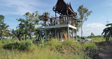 บ้านไม้ทรงไทย ที่รื้อถอนจากบ้านผม ๒ หลัง กำลังถูกประกอบโครงขึ้นมาอีกครั้ง ณ ผืนดินอันศักดิ์สิทธิ์